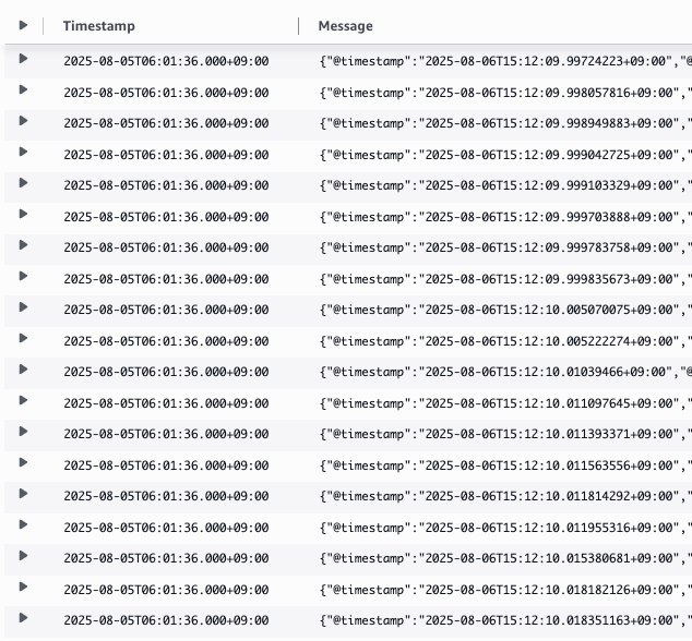 그런데 이후에 새로 찍히는 로그의 timestamp도 확인해봤는데, 여전히 2025-08-05T06:01:36.000 이었다.